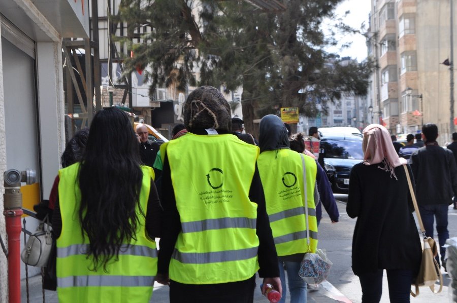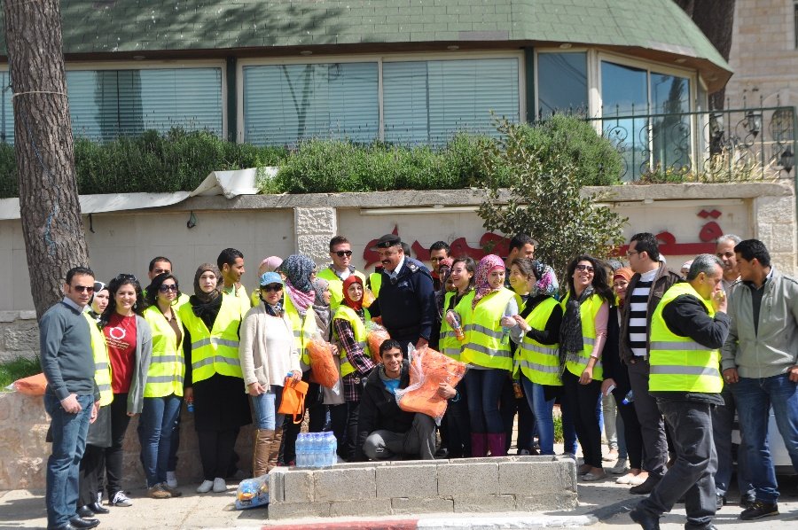وتجمع طلبة الجامعة المتطوعين، مع عدد من موظفي مجلس الخدمات المشترك، وشركة سكاي، أمام قصر الحمرا، متوجهين إلى محطات النقل العامة في مدينة رام الله والبيرة وإهداء سائقي السيارات العمومية كيس قماشي صديق للبيئة خاص بالسيارات وذلك لحثهم على عدم إلقاء النفايات من السيارات في الشارع والمحافظة على شوارع مدينتنا نظيفة من خلال وضع القمامة في الكيس القماشي.